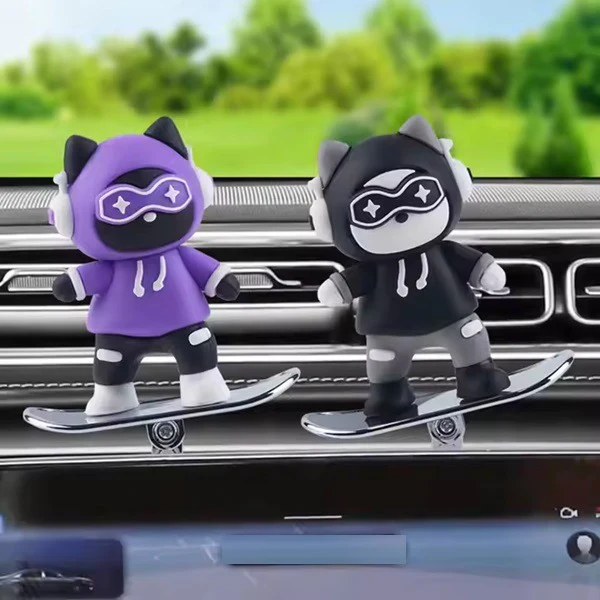Simple Installation: The Auto Car Sliding Skateboard Cat comes with a strong adhesive base for quick and effortless attachment to your car's dashboard or air vent. Choose the location that best suits your preference.