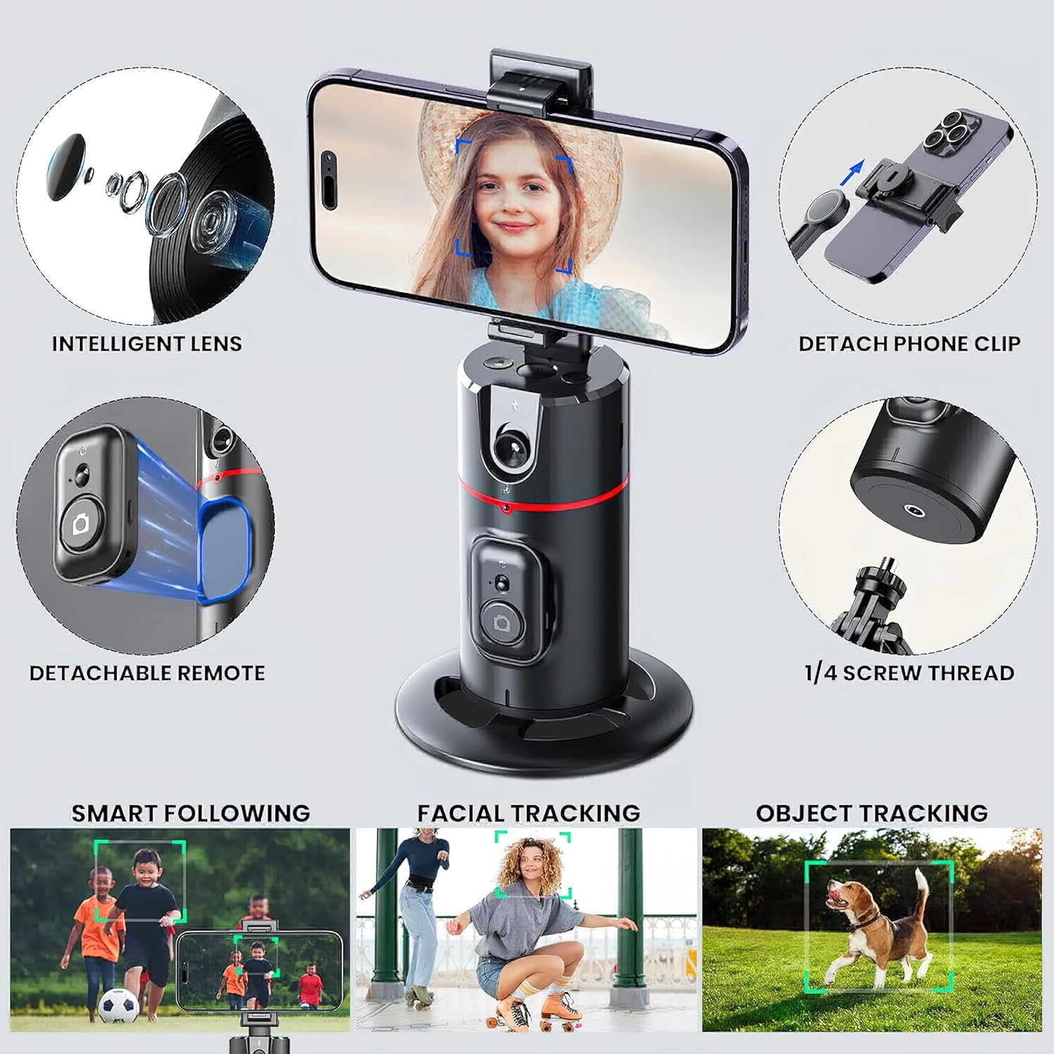 Mobile Selfie Stick with Tripod Stand: Our product combines a versatile mobile stand for video recording, featuring auto face tracking and 360-degree rotation, with a robust tripod. The removable cell phone clip allows easy detachment of your phone. Vlogging Kit for Mobile Phone: The perfect vlogging kit, equipped with a 360-degree camera stick and a flexible tripod. The kit includes a detachable remote control with a range of up to 10M/33Ft. Ideal for TikTok, Instagram, Facebook, Zoom, live streaming, and photo shooting. Long-lasting Battery Life: Our auto face tracking tripod boasts a 1200mAh rechargeable battery that lasts for 6-8 hours after a full charge. This makes it an essential part of any mobile vlogging kit, offering you uninterrupted video recording time.User-friendly Gesture Control: The selfie stand is equipped with rotating AI gesture control. Make the 'OK' gesture to start recording and the open palm gesture to pause. Ideal for vlogging, live streaming on various platforms like TikTok, Instagram, and Facebook. Versatile and Portable design: This mobile selfie stick with tripod stand is foldable and lightweight, making it the perfect travel companion. Its 360-degree rotation capability and adjustable standing/sitting positions offer unmatched flexibility for all your video recording needs.