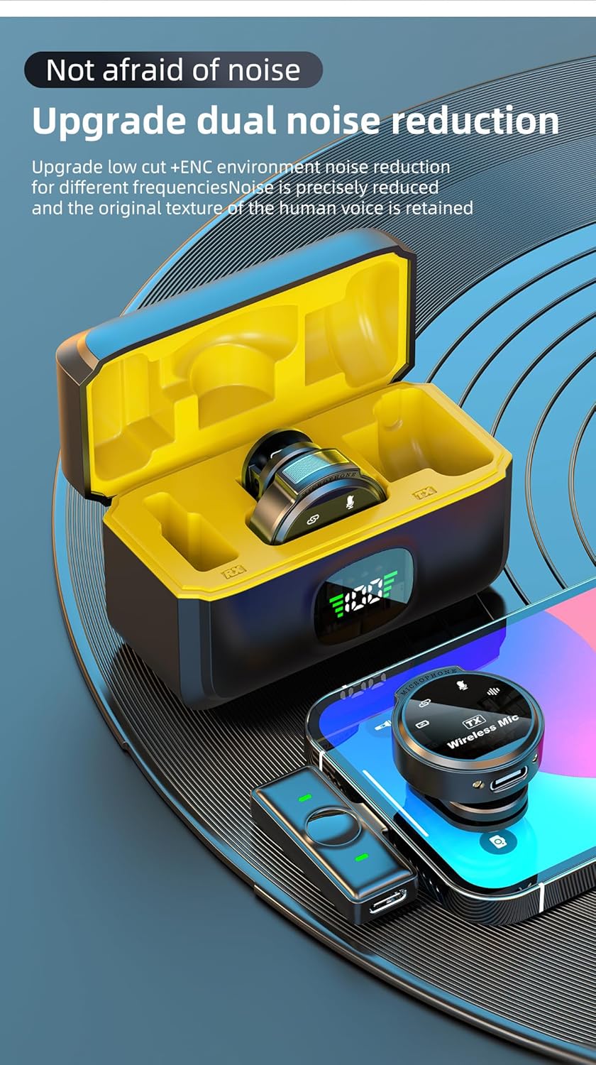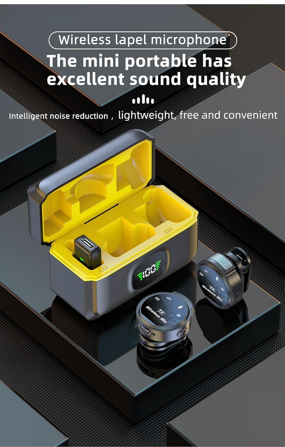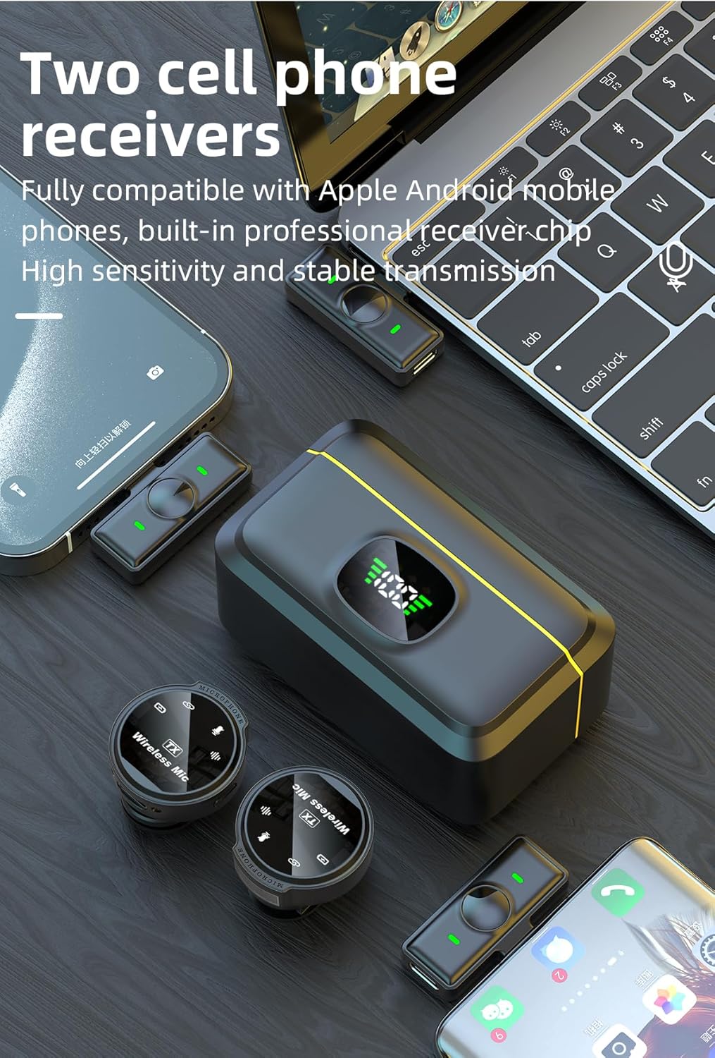 H S Wireless Lavalier Microphone for iPhone iPad Laptop Android with Charging Case 164ft Transmission Range & 48 Hours Battery,