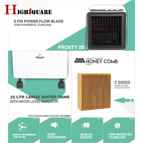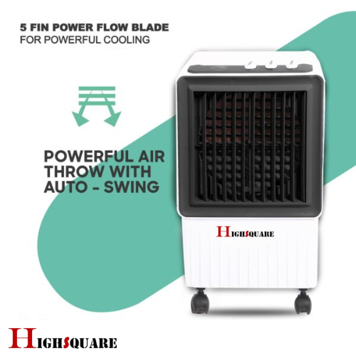 Air coolers make use of a simple air moving system that pulls fresh air from the outside and drives it through the wet cooling pads. The evaporation of water in these cooling pads brings down the temperature of the air, which is then blown out by the fan.