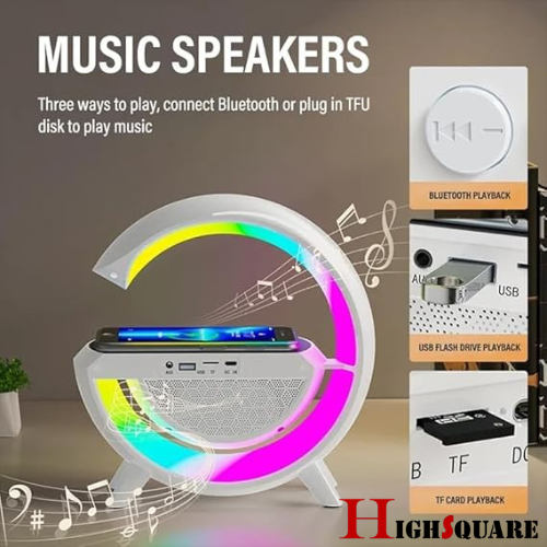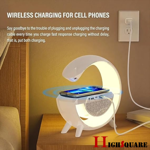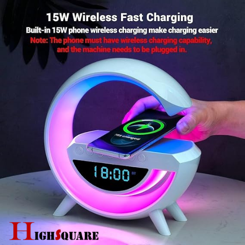 H S Atmosphere LED Lamp Ambience Night Light Bluetooth Speaker, 15W Wireless Phone Charger, Alarm Clock and Built-in Battery