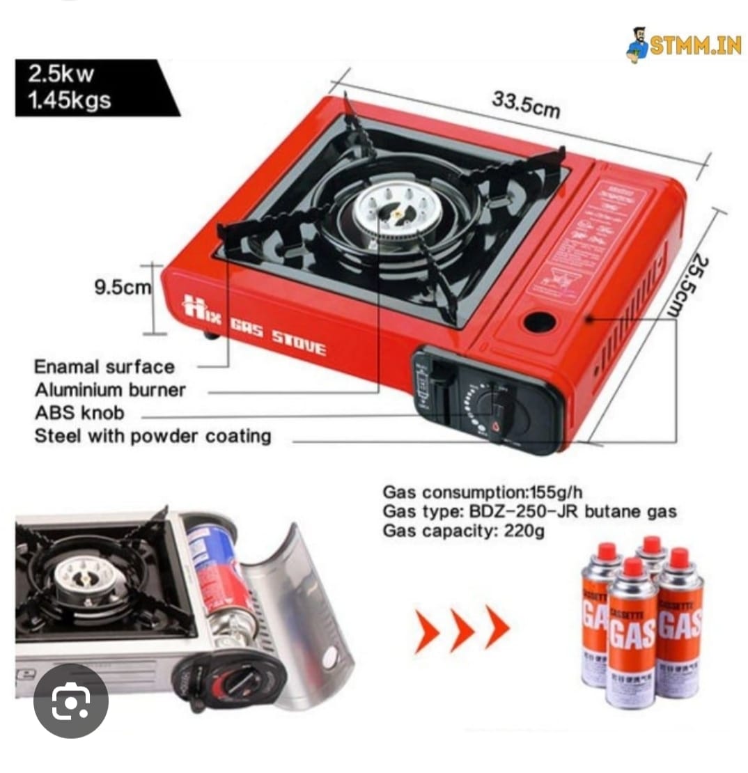 H S Gas Stove MS-2500, Up to 8000 BTU, Camp Stove, with Carrying Case (Red)