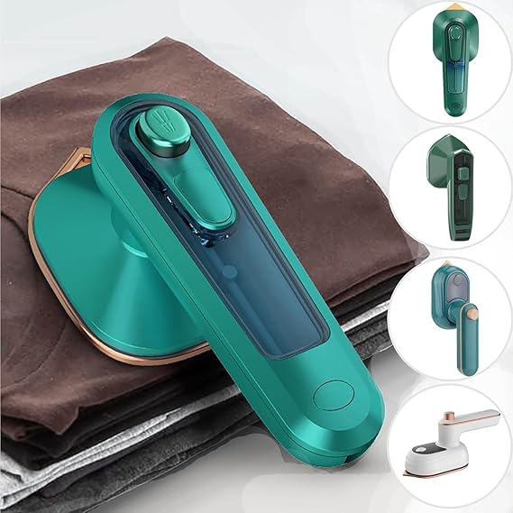 H S Handheld Garment Steamer Iron mini Press, Green and Beige