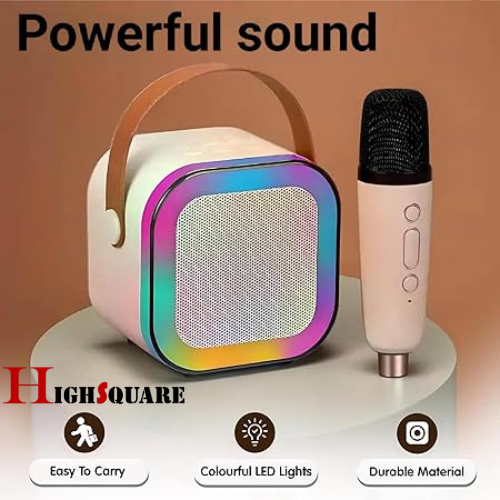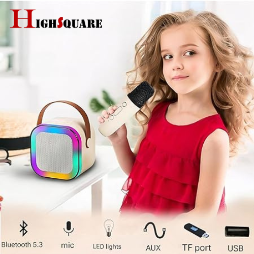 H S Rechargeable Karaoke Mic with Speaker for Singing | Wireless Mini Portable Bluetooth Speaker with Microphone & LED Lights
