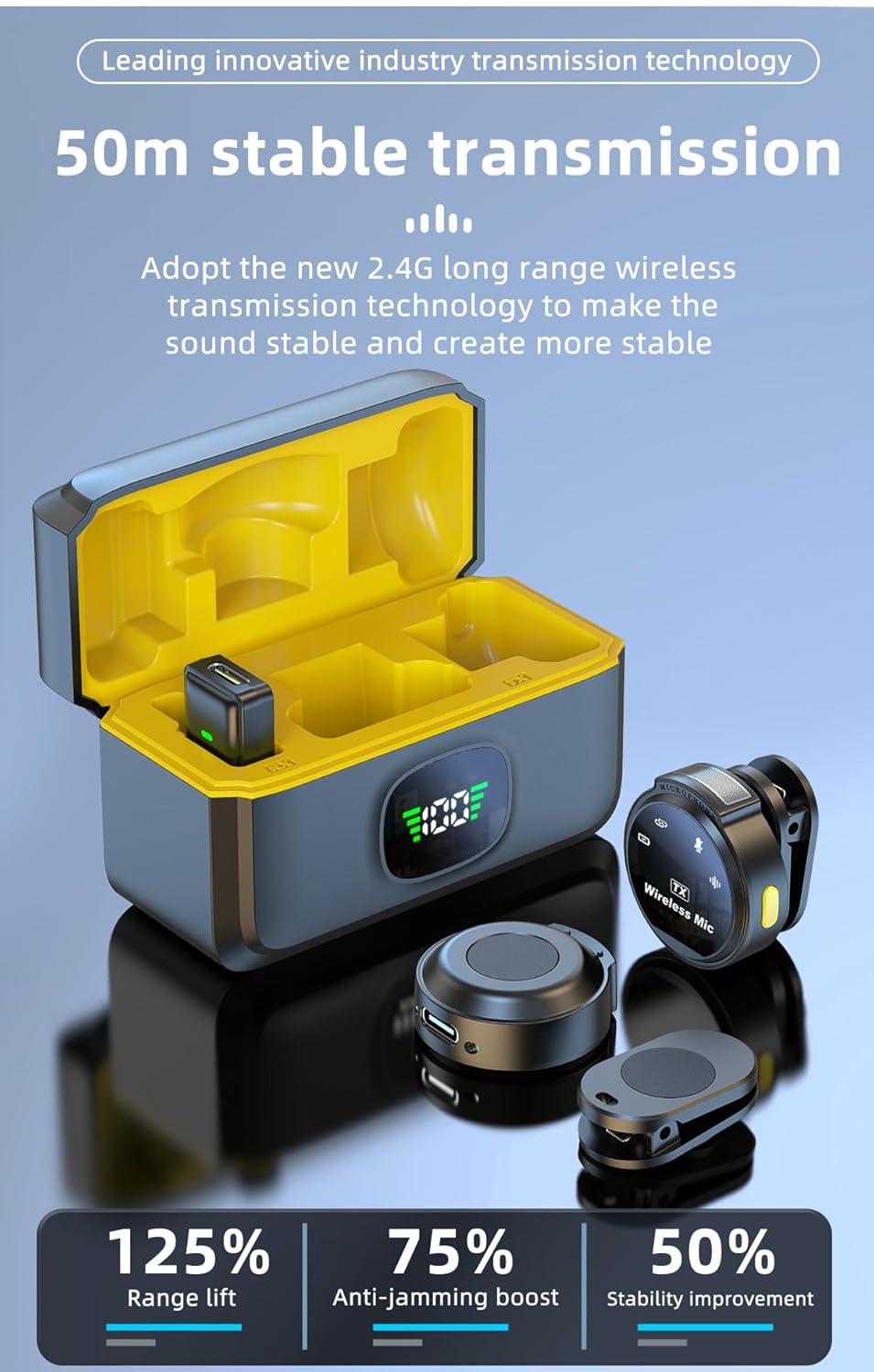 H S Wireless Lavalier Microphone for iPhone iPad Laptop Android with Charging Case 164ft Transmission Range & 48 Hours Battery,